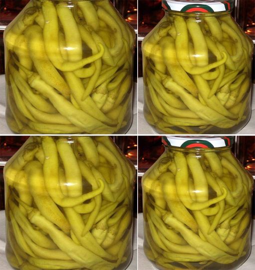 Ardei iuți la borcan – Mod de preparare: Ardeii iuți spălați se pun în borcane, în așa fel încât să intre cât mai mulți. Apa, oțetul, sarea și zahărul se pun într-o cratiță încăpătoare și se amestecă ușor. Cratița se pune pe foc doar până s-au dizolvat sarea și zahărul. Saramura se toarnă peste ardeii din borcane, până când sunt complet acoperiți.