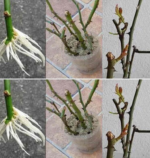 Luati un recipient, turnati apa in el si scufundati butasii in ea, puneti-i cu tepii in jos si lasati-i 2 zile. Daca urmati aceasta metoda. puteti obtine trandafiri in 5 zile. Dupa aceasta inmuiere, plantati butasii in sol, este bine sa amestecati solul cu putin pamant pentru flori sau sa amestecati putin ingrasamant inainte. Este important sa mentineti tepii butasilor in jos si solul sa fie bine umezit inainte. Trebuie retinut si ca butasii au nevoie de multa lumina.