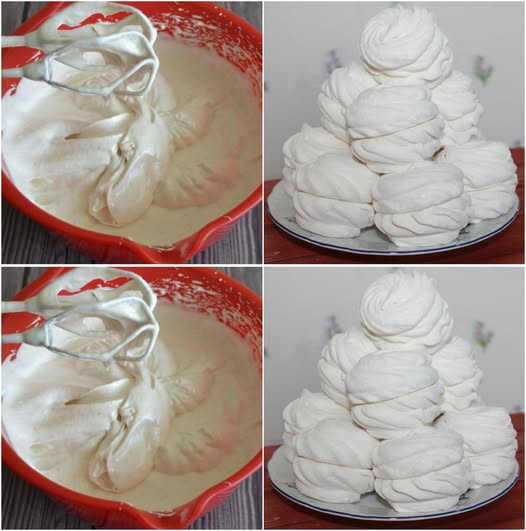 - Transferați imediat bezeaua într-un poș și formați porții pe o tavă tapetată cu hârtie de copt.