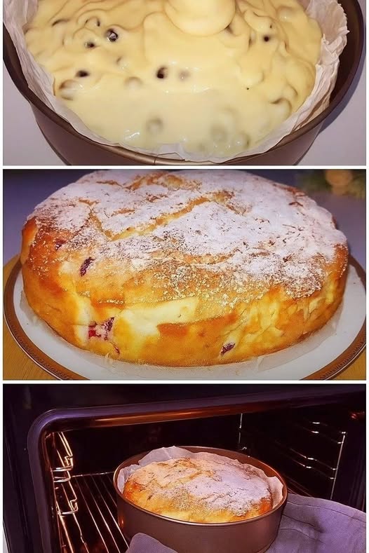 Se cerne făina și praful de copt în amestec, se bate până când se obține un aluat fără cocoloașe. Se presară coacăzele cu amidon și se amestecă.