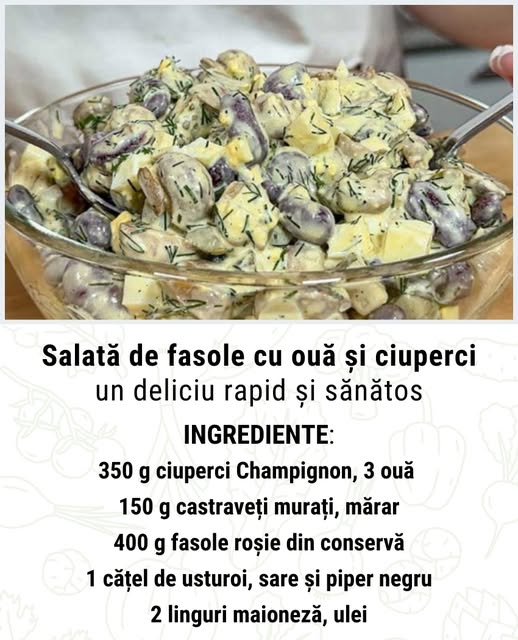 Această salată de fasole cu ouă și ciuperci este un exemplu perfect de cum puteți pregăti rapid o masă gustoasă și nutritivă. Ingredientele delicioase și metoda simplă de preparare o fac o alegere excelentă pentru orice moment al zilei.