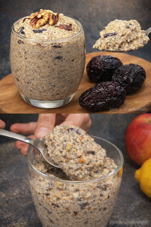 Acest desert este o opțiune rapidă, nutritivă și versatilă, potrivită pentru cei care vor să își susțină digestia într-un mod natural. Combinația de fibre, grăsimi sănătoase și fructe oferă gust, sațietate și confort digestiv.